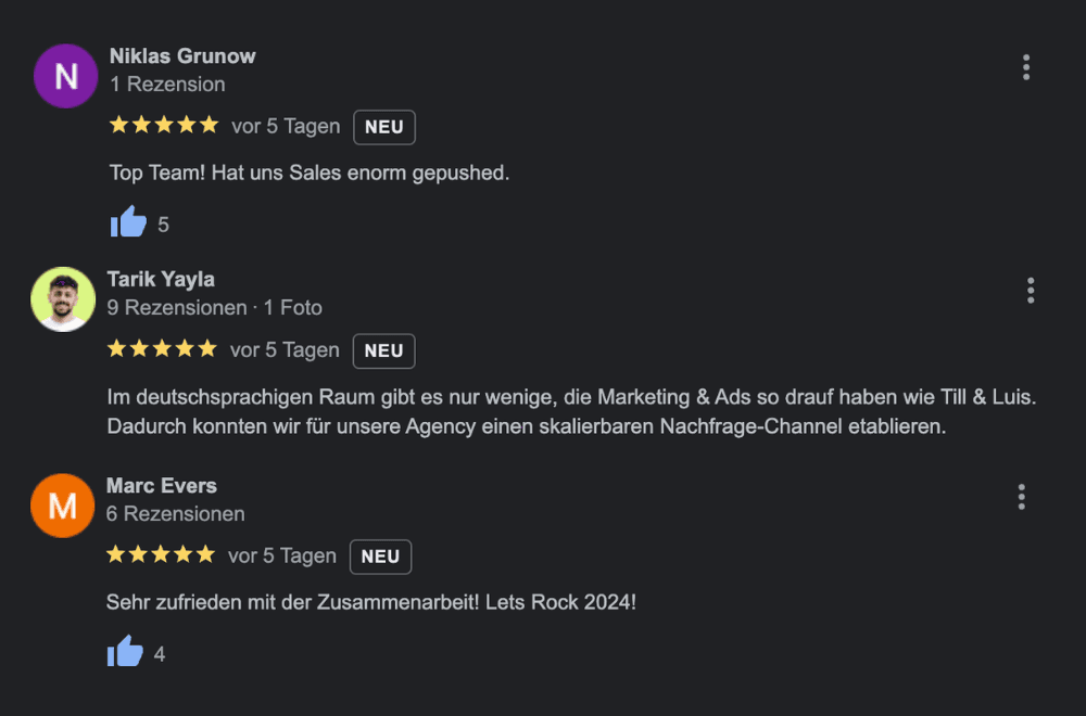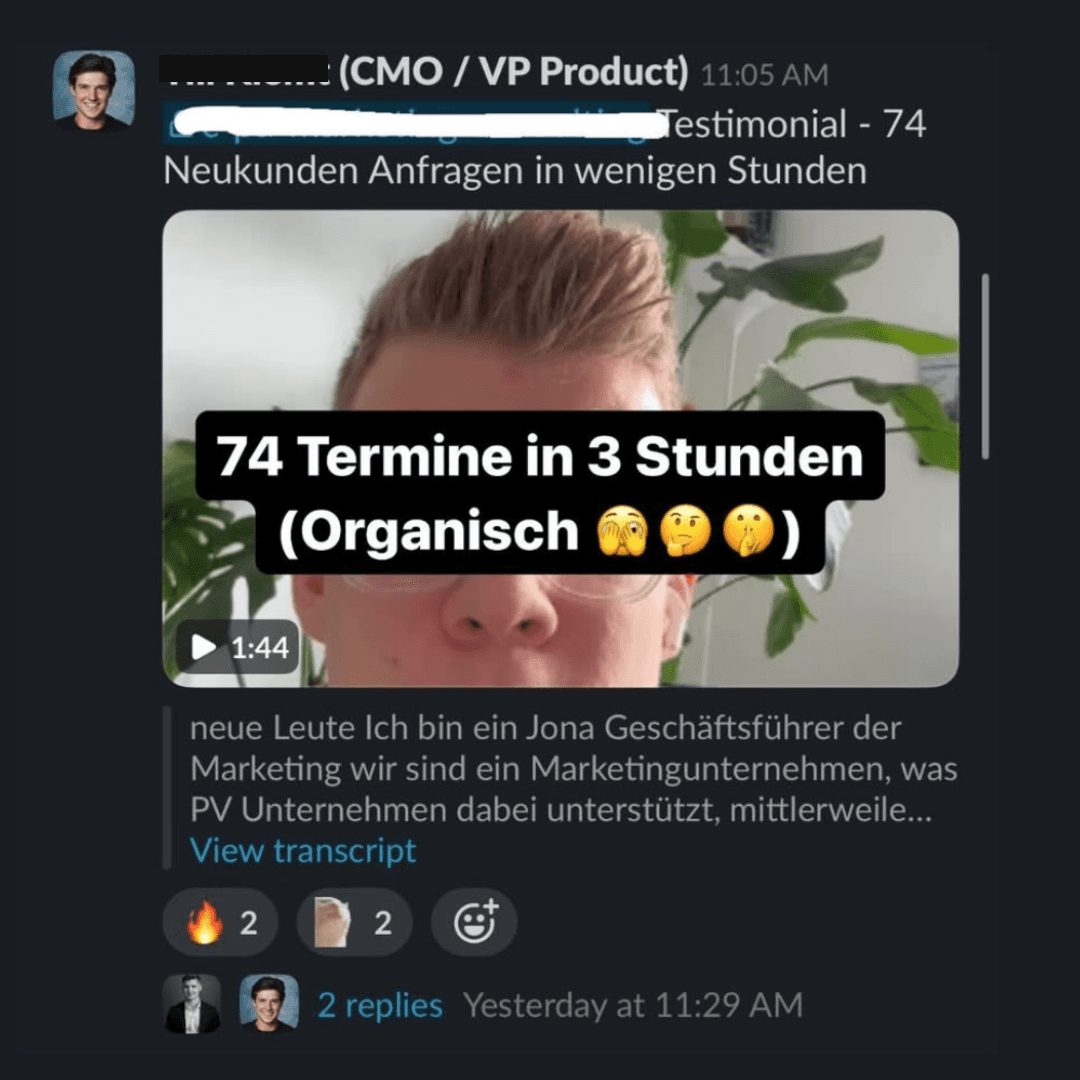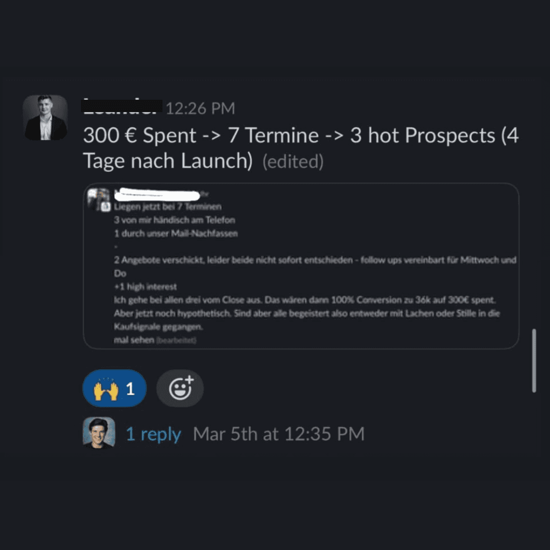 Wir übernehmen die komplette Umsetzung für dich: Du bekommst fixe, vorqualifizierte Termine direkt in deinen Kalender – ohne Aufwand für dein Team. Ideal für dich, wenn du Ergebnisse willst, ohne dich operativ zu kümmern.